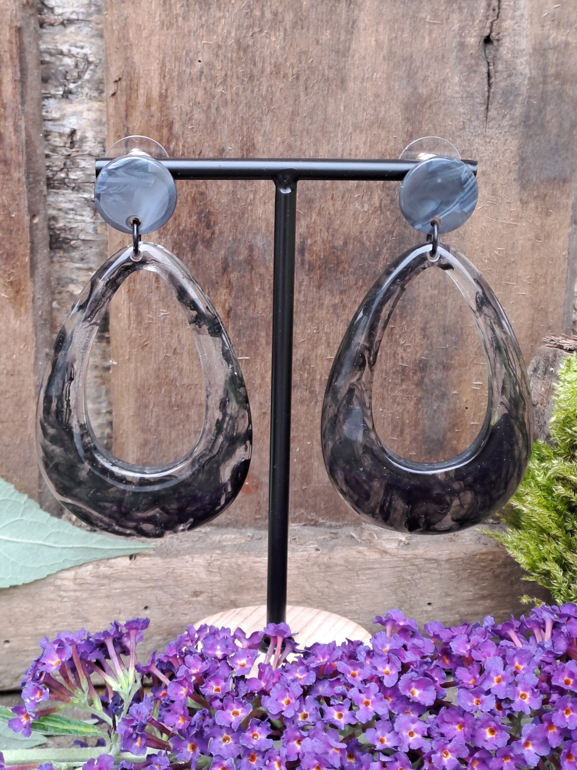 resin druppel transparant/zwart gemarmerd